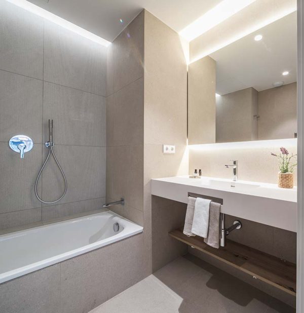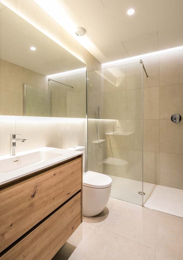 Tots els habitatges d’aquest edifici plurifamiliar entre mitgeres disposen d’un sistema aerotèrmic de producció d’ACS i climatització reforçat amb un dipòsit acumulador de 200 litres. La calefacció es distribueix mitjançant radiadors d’alumini, mentre que l’aire acondicionat es disposa a través de conductes ocults en el fals sostre i unitats ‘fancoil’.